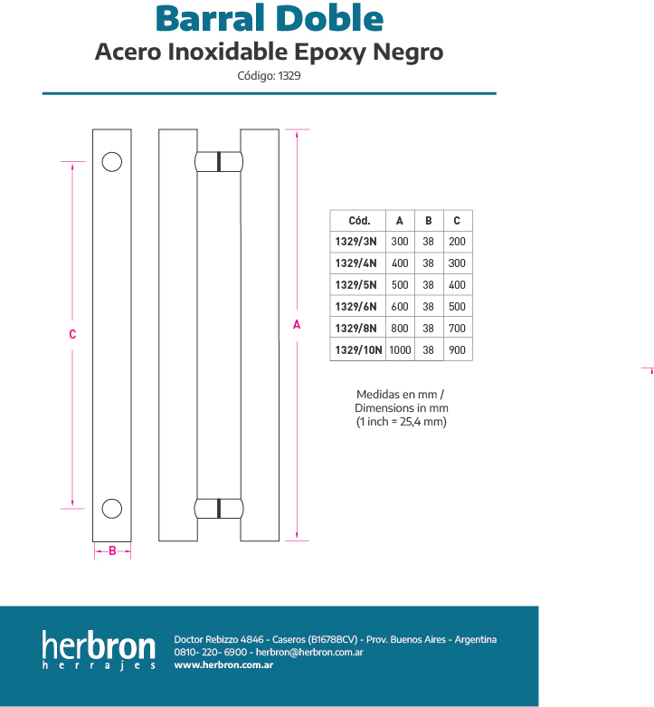 Acero Inoxidable. Calidad 304. Uso en puertas y portones. Fácil y rápida instalación. Presentación: Caja de 1 unidad con tornillos para su instalación. Terminación: Epoxy Negro Origen China.