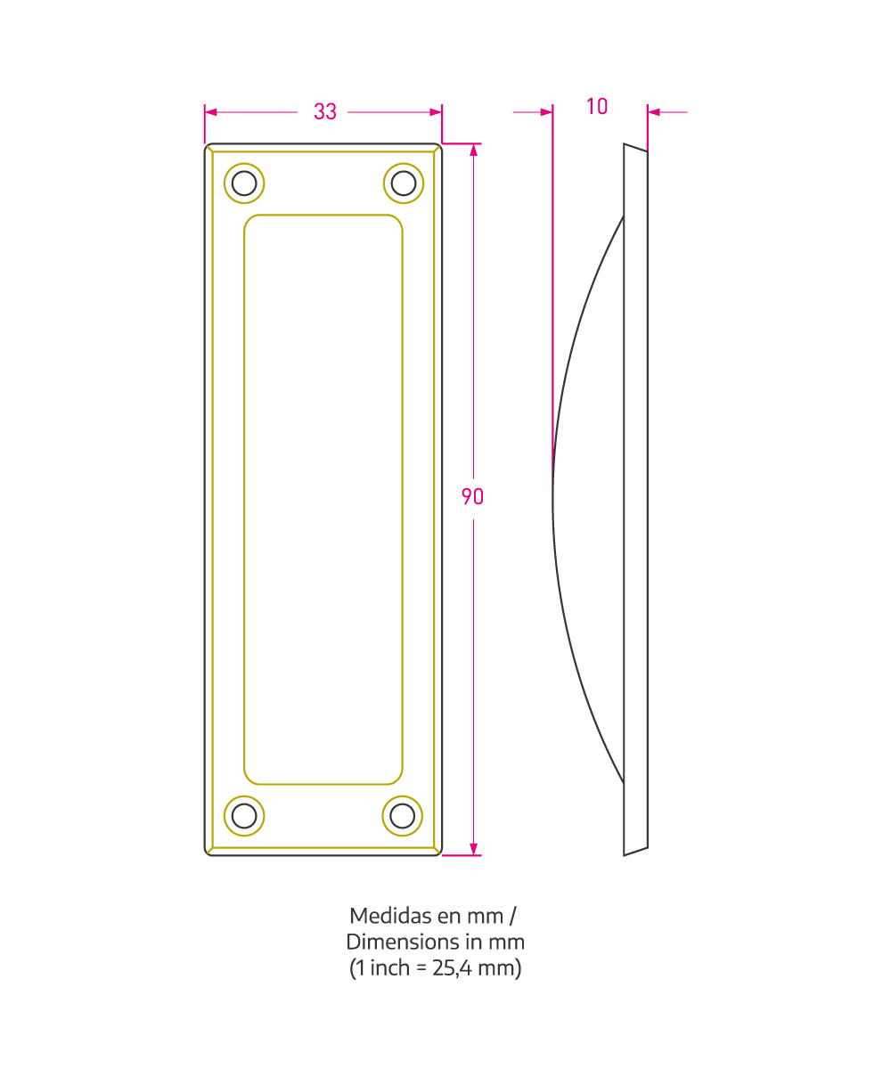 Acero inoxidable estampado. Uso en muebles y puertas corredizas. Opcional: bocallave. Fácil y rápida instalación. Presentación: Caja de 25 unidades. Terminación: AP, AS